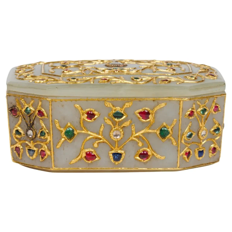 An Imperial Mughal Gold Jade Box Set With Diamonds and Semi Precious Stones