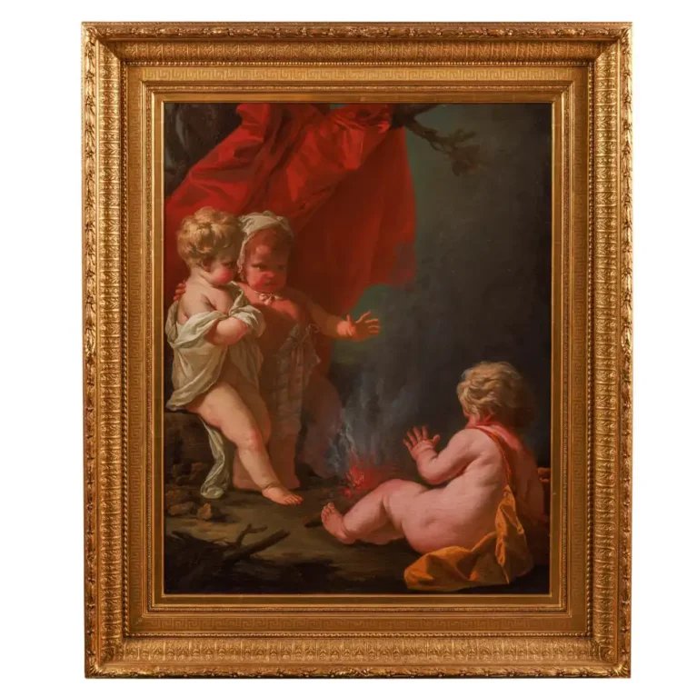 Circle of Jean Honore Fragonard (1732–1806) A Painting of Three Putti and Fire C. 1795