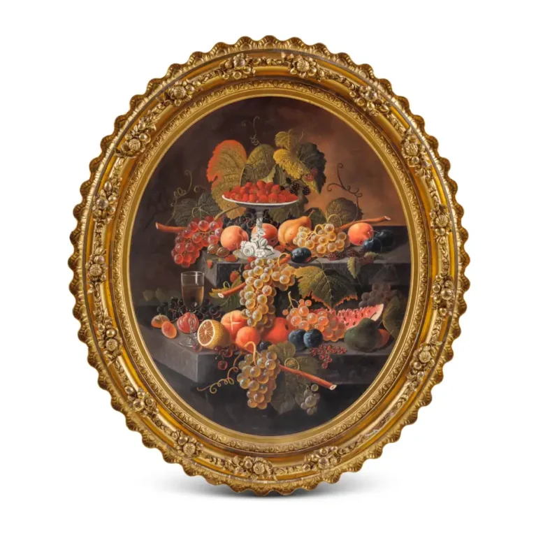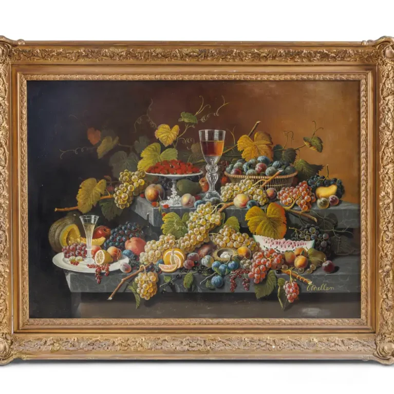 An Exceptional Two-Tiered Fruit Still Life Oil Painting, by Mary Mellen, C. 1850