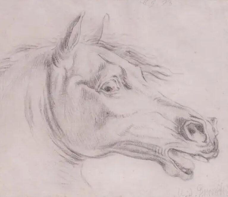 Theodore Gericault, A Rare and Important Study Drawing “Equestrian Horse Head”