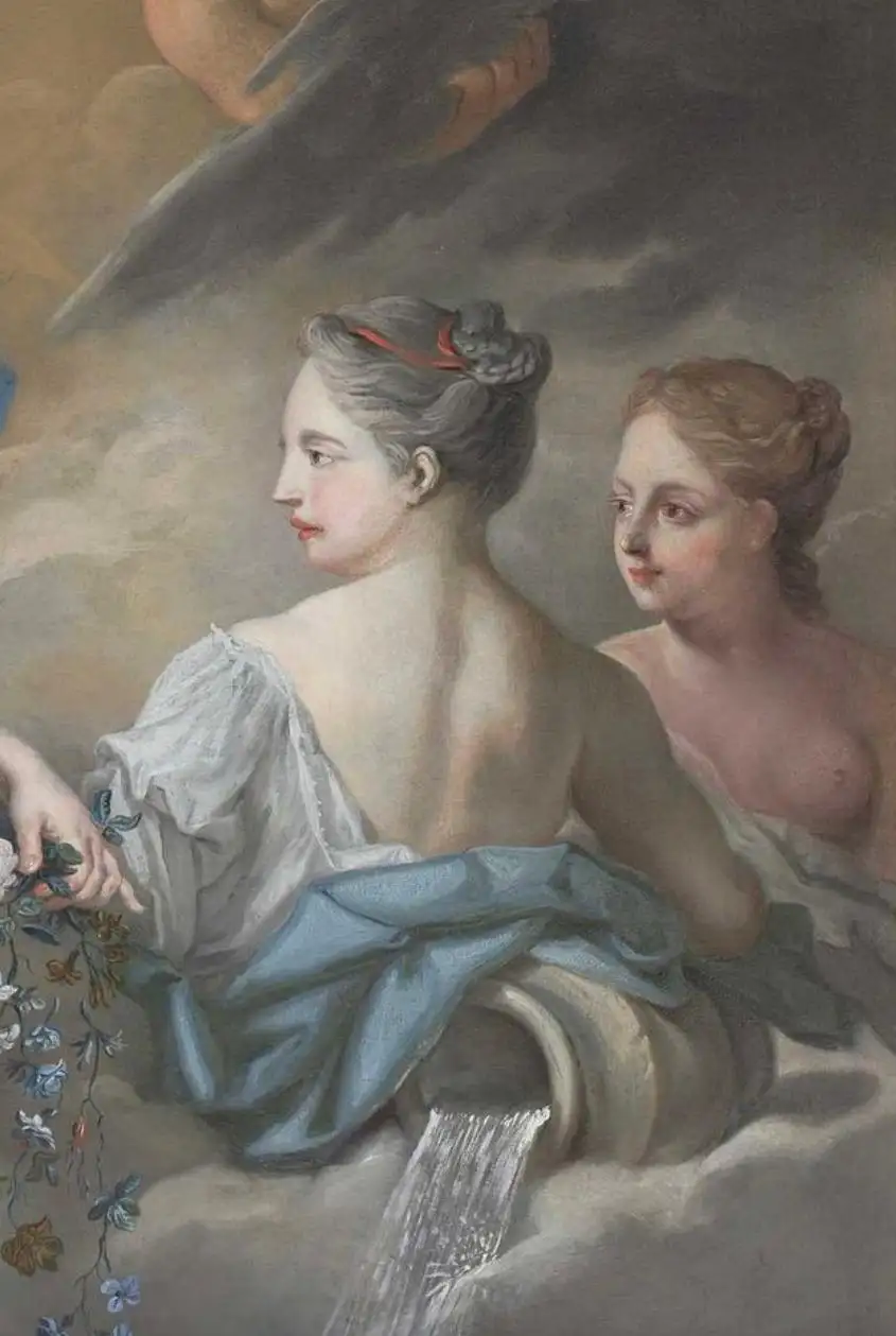 Jacques-Francois Delyen A Magnificent Pair of French Royal Paintings “Aurora and Diana” “Night and Day” 1752