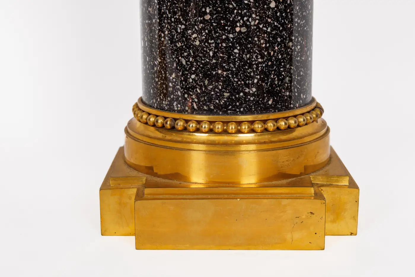 A Magnificent Pair of Louis XVI Style Gilt Bronze Candelabra on Porphyry Bases