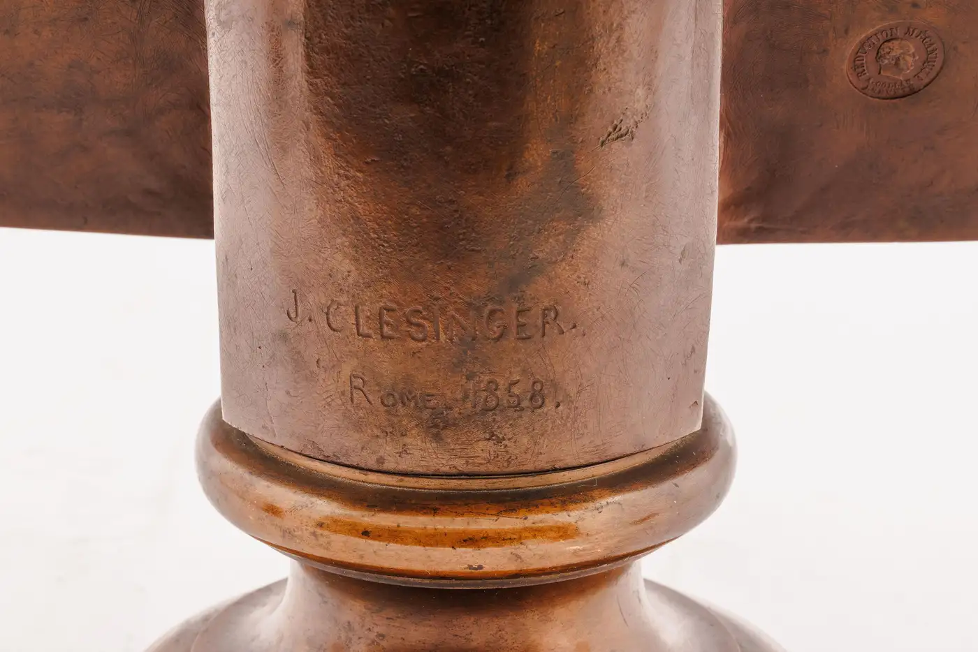 - Bearing the signature “J. Clesinger Rome 1858” and the mark of the prestigious foundry “F. Barbedienne Fondeur,”.