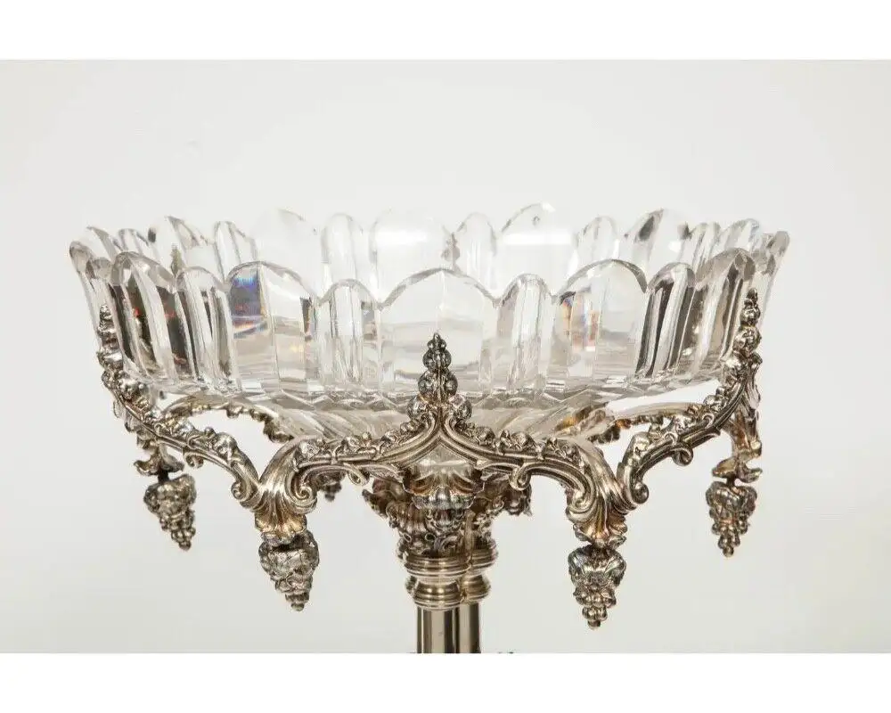 - A Rare and Historic 1859 Elkington Silvered Bronze Victorian Centerpiece with Cut-Glass Bowl.
