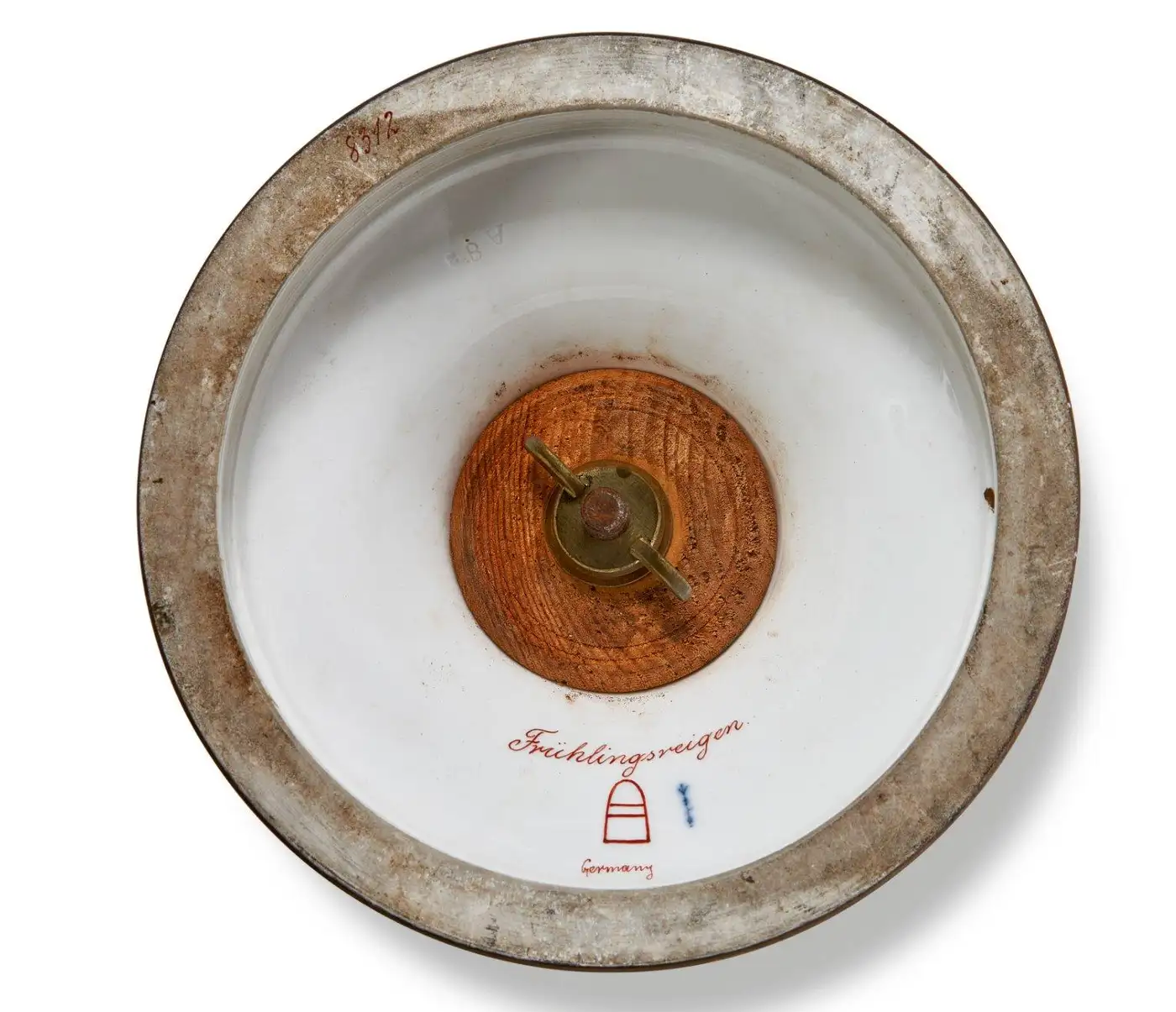 - A breathtaking example of Berlin KPM porcelain artistry, this hand-painted vase, titled “The Spring Dance” (Frühlingsreigen), captures the whimsy and elegance of late 19th to early 20th-century design. Bearing the distinguished blue sceptre mark, iron-red beehive mark, pattern number 8342, and impressed AB2, this masterpiece is signed by the celebrated artist Wagner.