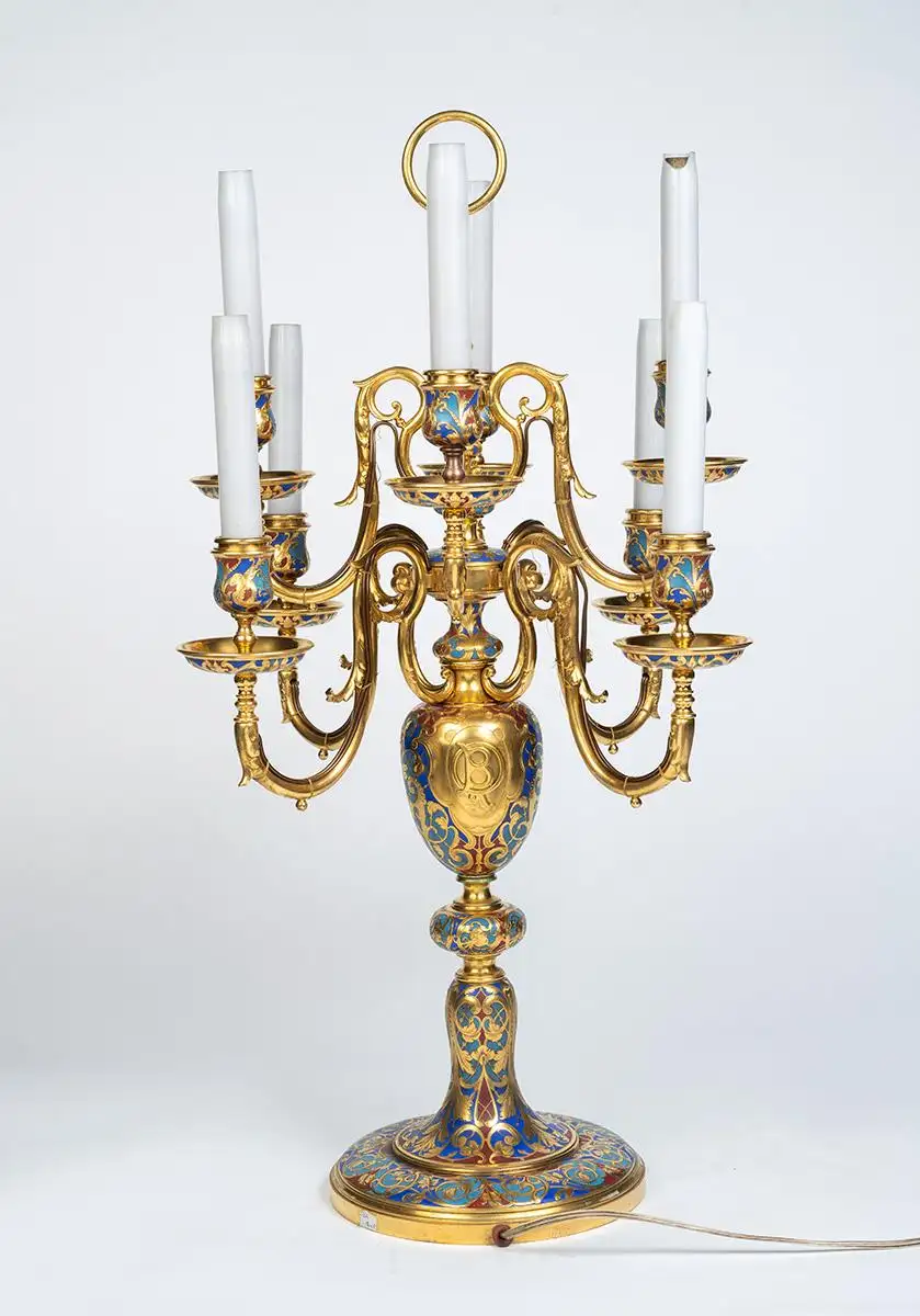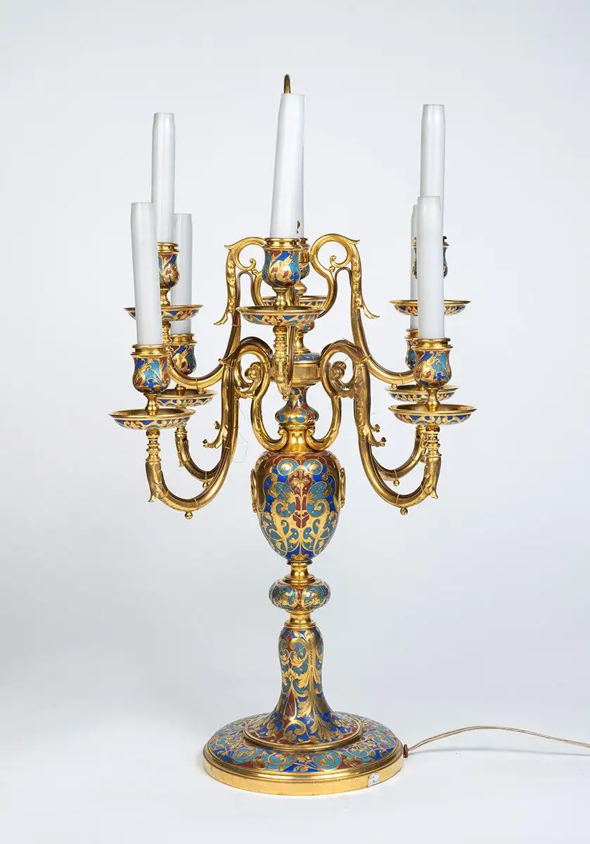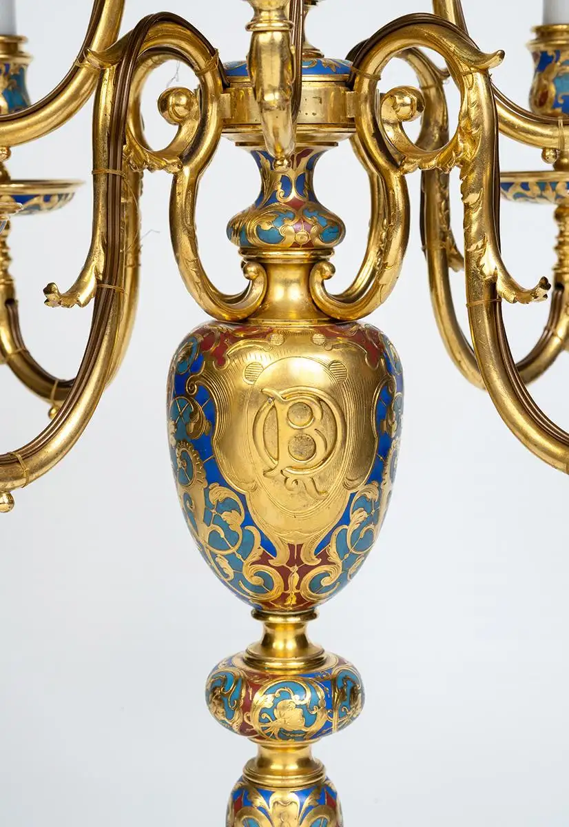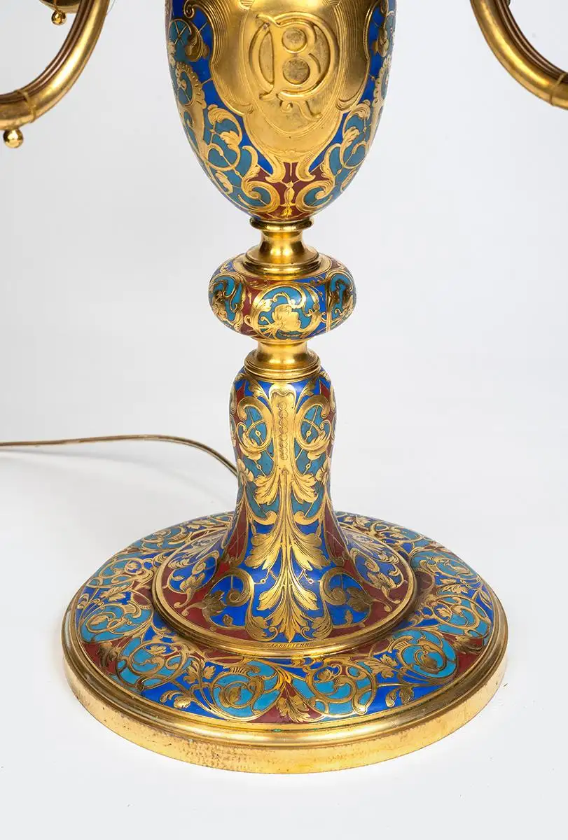 - Illuminating Heritage: An Important “Exhibition” Suite of Four Ferdinand Barbedienne and Louis-Constant Sevin Champlevé Enamel and Ormolu Eight-Light Candelabra/Lamps