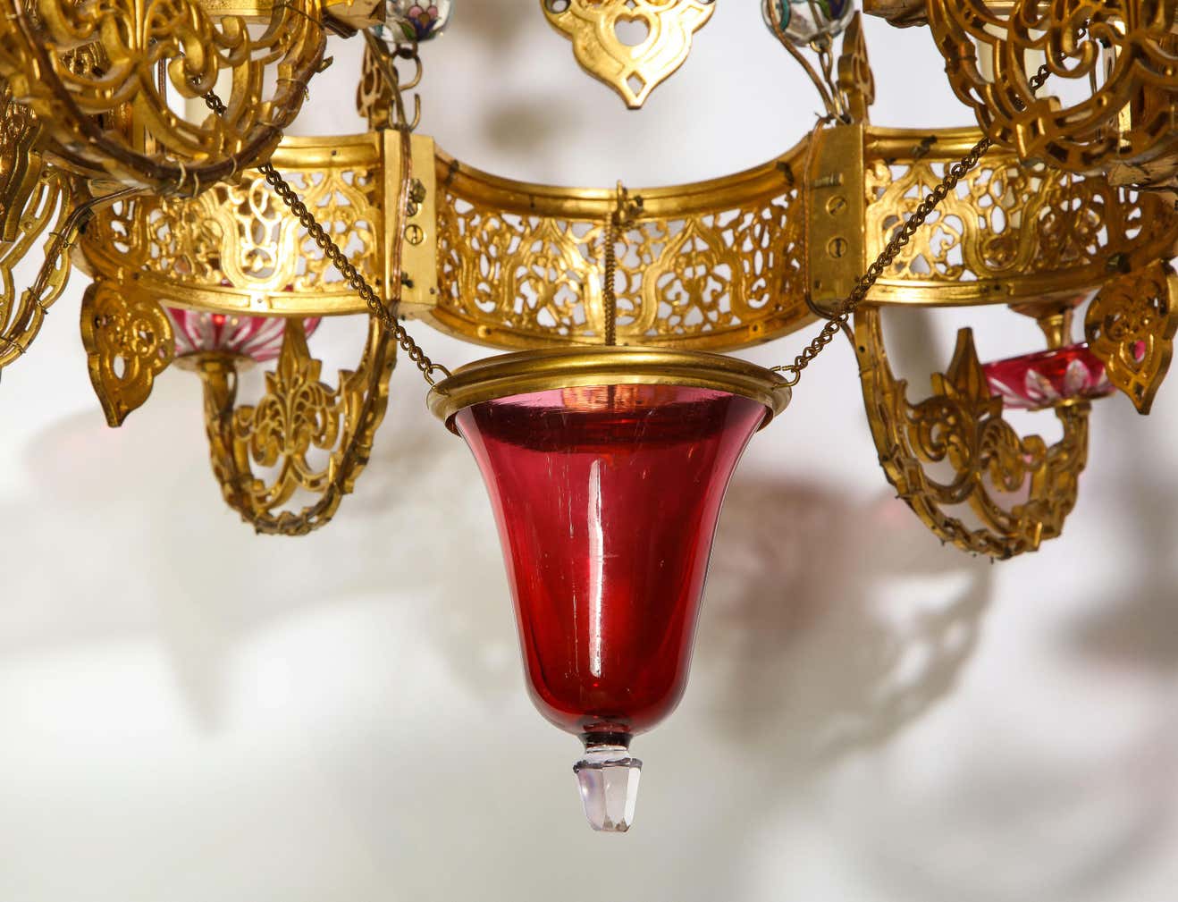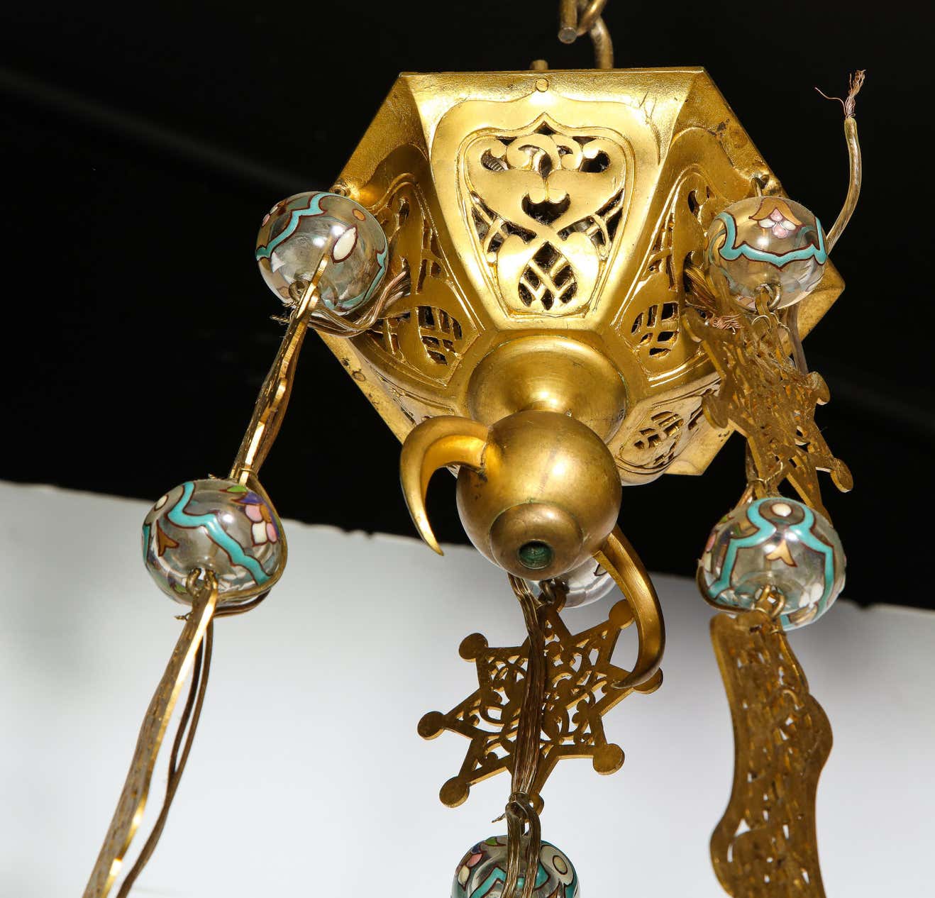 Exceptional and Rare Islamic Alhambra Bronze and Enameled Glass Chandelier