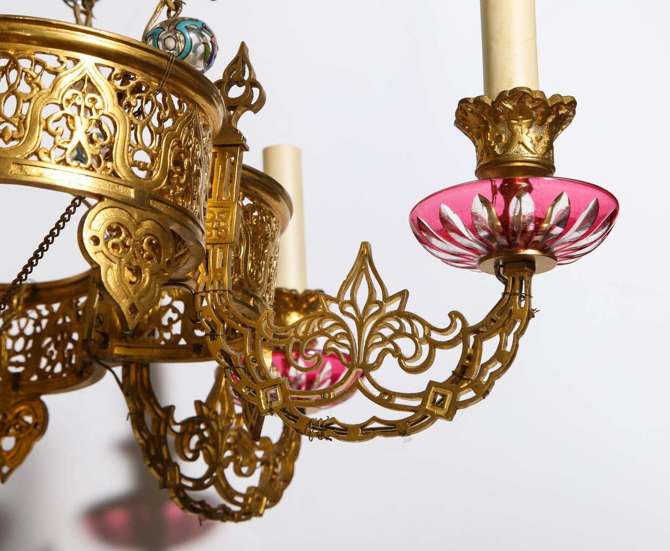 - This one of a kind, exceptionally elegant, jewel-quality chandelier, is one of the most beautiful chandeliers we have seen in this style. The ormolu is phenomenal, the enameled glass balls on the chain are beautiful, and of course the ruby red glass plates fit perfectly.