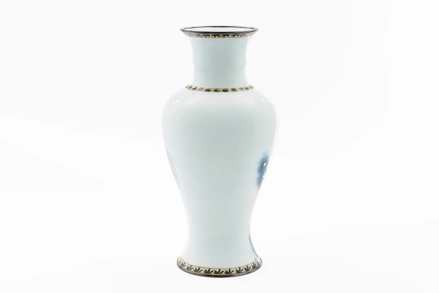 • The form and palette draw clear inspiration from earlier blue and white porcelain traditions, long admired and reinterpreted by Japanese artisans. In the present example, this classical aesthetic is translated into the medium of cloisonné enamel, resulting in a work that bridges historic ceramic influence with advanced enamel technique.