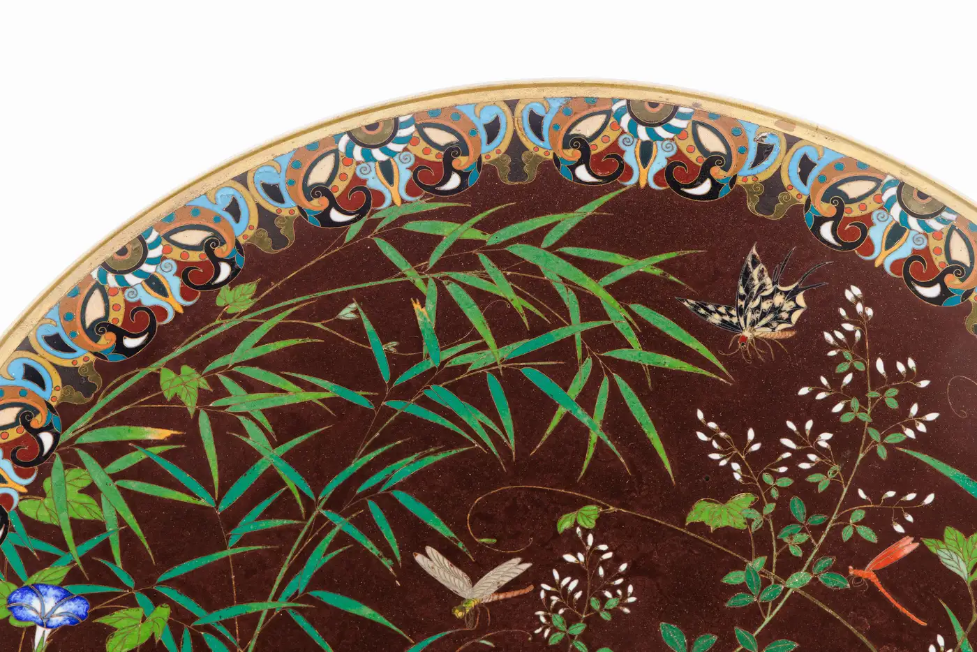 Fine Meiji Cloisonné Enamel Charger Bamboo and Insects Attributed, Goto