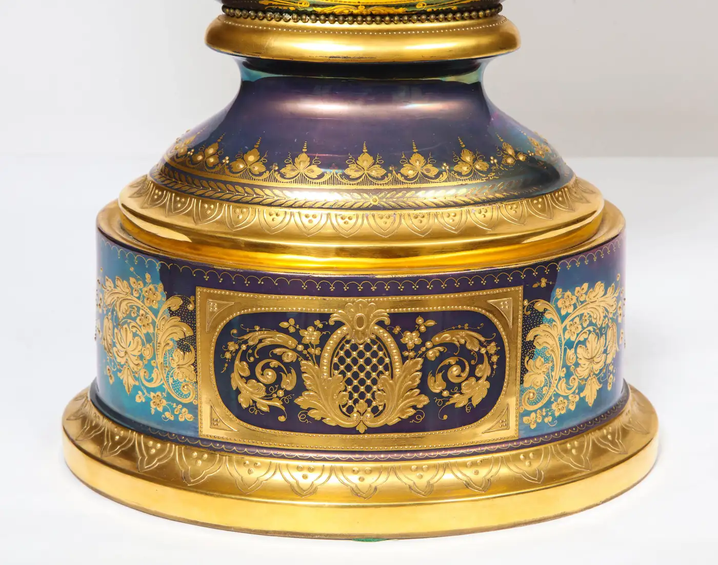 Monumental Royal Vienna Iridescent Porcelain Portrait Vase and Cover, circa 1880