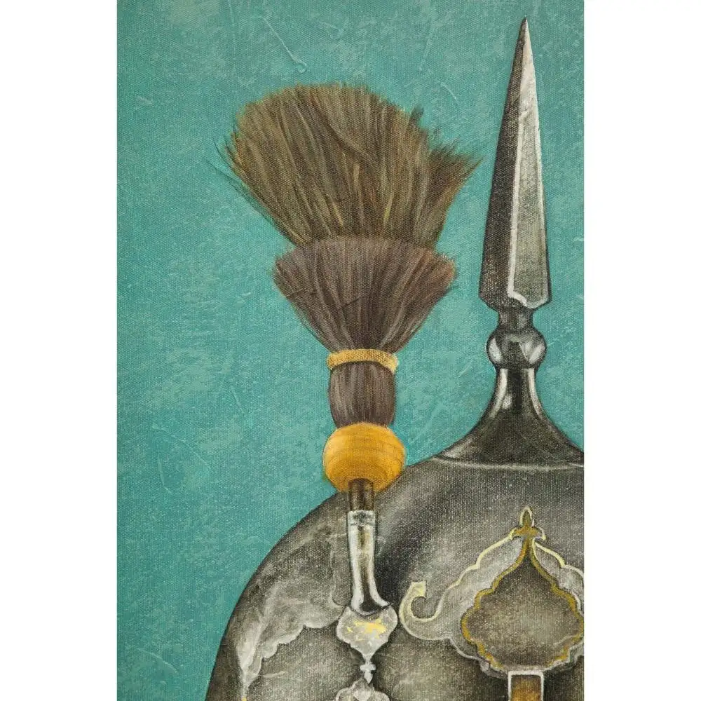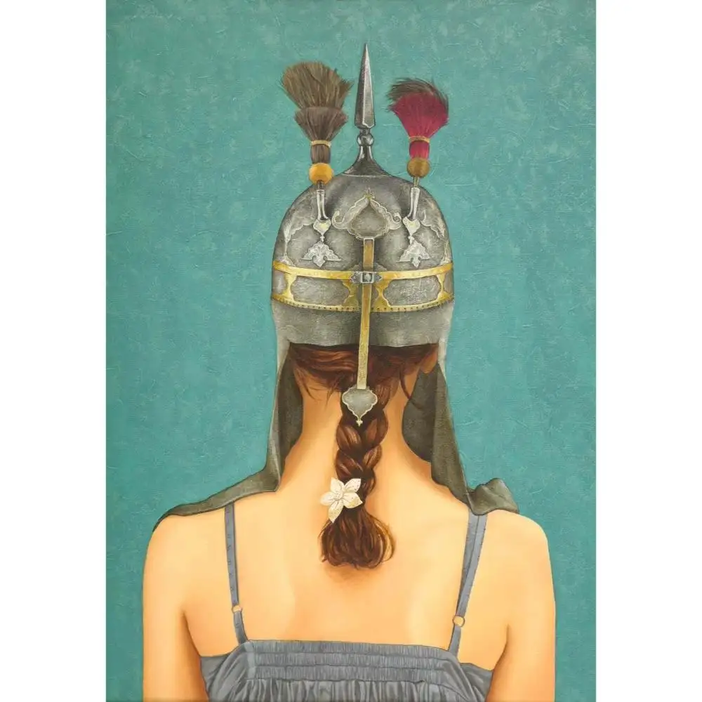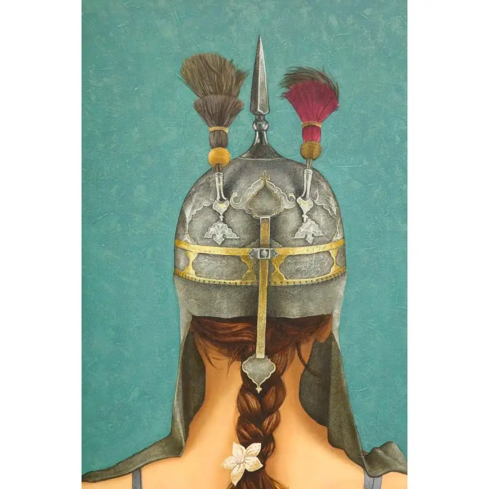 • Depicting a woman in Safavid gold and metal armour.
