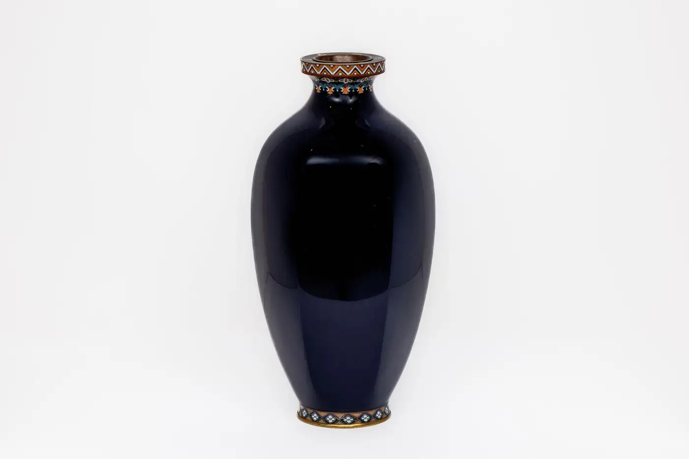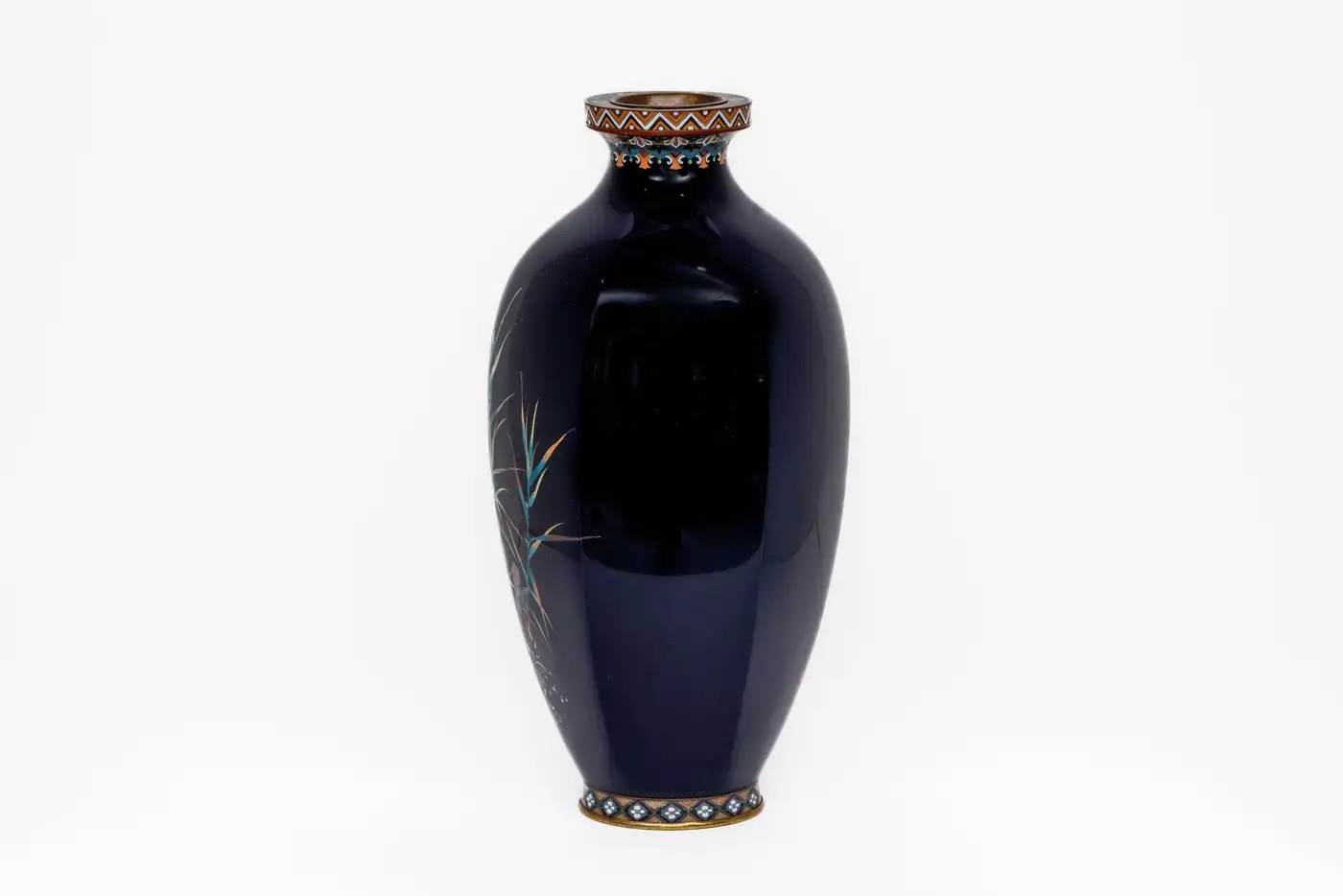 • This vase exemplifies the sophistication of Meiji-period cloisonné at its very finest — combining an innovative form, flawless execution, and a serene naturalistic subject. A superb and museum-worthy work from the celebrated Hayashi Kodenji studio.